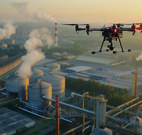 Em inspeções industriais com drones 🚁, fornecemos visões detalhadas de tanques, tubulações e caldeiras, evidenciado em nossa colaboração de sucesso com a Raízen no projeto E2G 🏭.